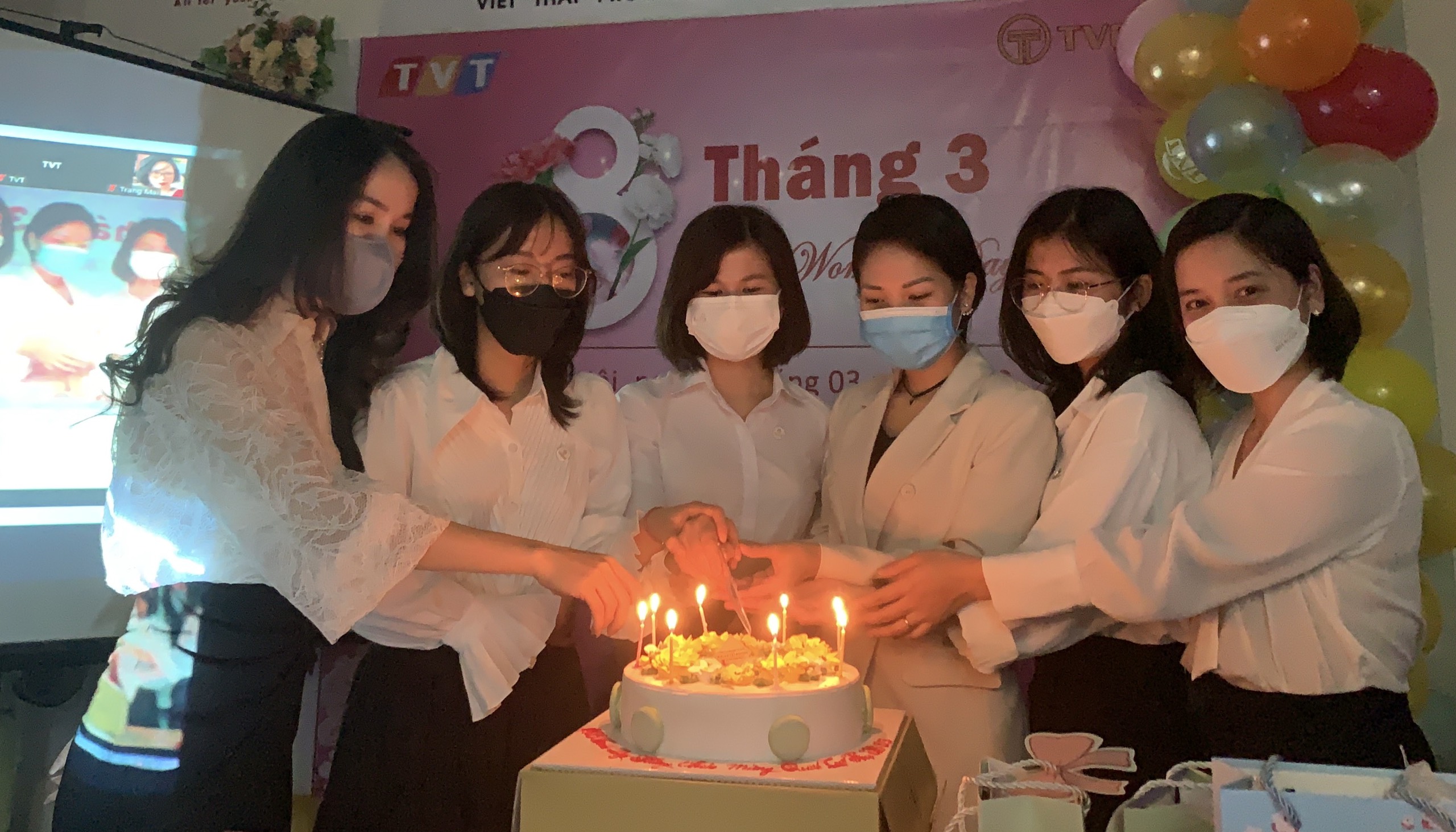 Kết thúc buổi lễ Tôn vinh giá trị Người phụ nữ, toàn thể thành viên Công ty cùng nhau sum họp, hát vang bài ca chúc mừng sinh nhật dành tặng cho các nhân viên có ngày sinh trong quý I/2022. Dưới bầu không khí ấm cúng của mái nhà TVT, mọi người cùng thổi nến và thưởng thức vị ngọt ngào của bánh, vị ngọt của tình yêu thương.