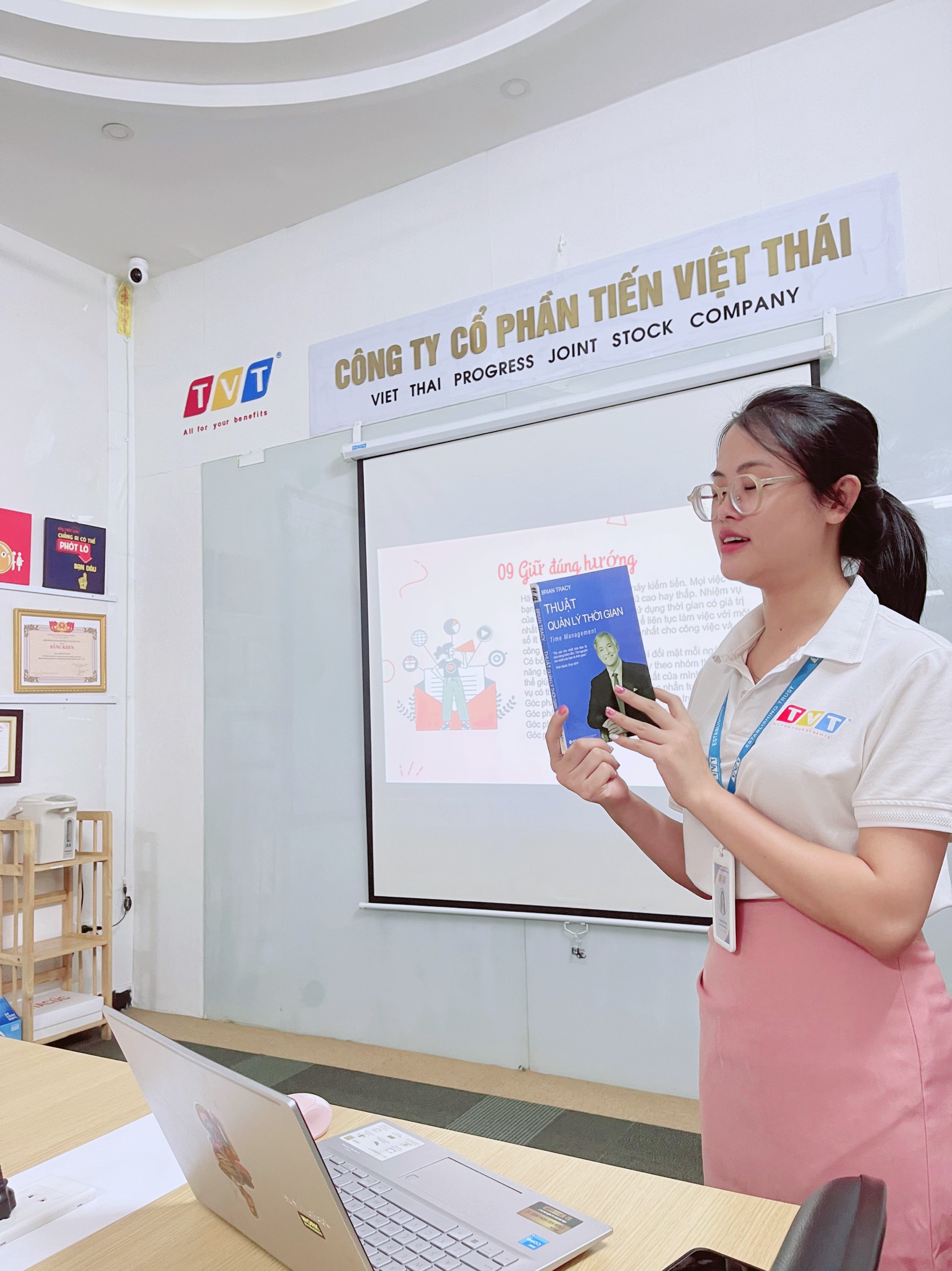 Sáng ngày 10/7/2023 đã diễn ra buổi chia sẻ sách của chị Nguyễn Thị Hồng, nhân viên Kinh doanh, cuốn sách có tựa đề: Thuật quản lý thời gian của tác giả Brian Tracy