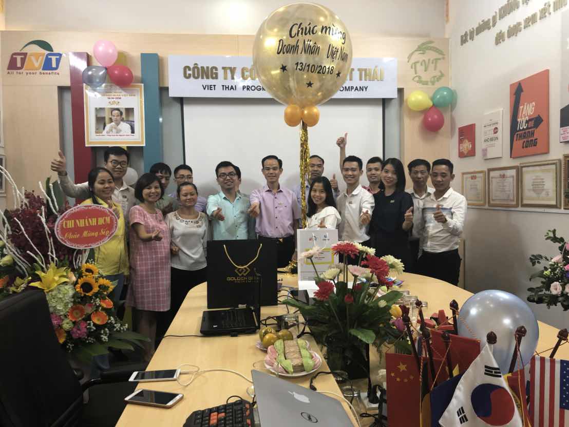 Nhân dịp kỷ niệm 14 năm Ngày Doanh nhân Việt Nam 13/10/2004 - 13/10/2018, CB CNV Công ty Cổ phần Tiến Việt Thái kính chúc Doanh nhân - Tổng Giám Đốc Nguyễn Quốc Toán một năm kinh doanh đầy thịnh vượng, may mắn, thành công, luôn giữ vững bản lĩnh, tinh thần chiến binh đưa con thuyền TVT vươn ra biển lớn