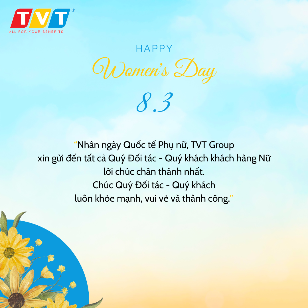 TVT Group xin gửi đến các nữ Khách hàng, Đối tác và các nữ cán bộ nhân viên trong công ty lời chúc tốt đẹp nhất nhân ngày Quốc tế Phụ nữ 8/3: