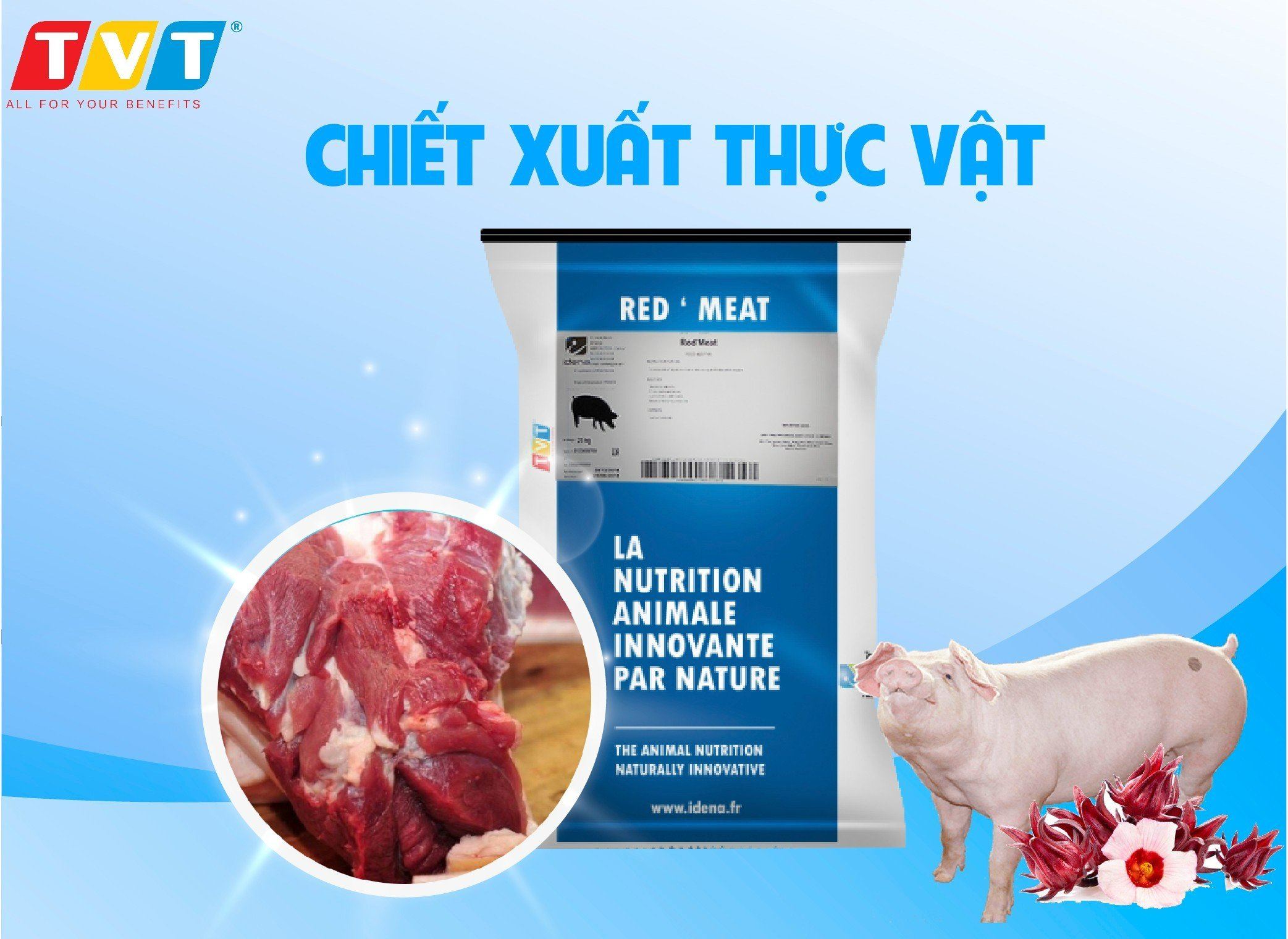 RED’MEAT là sản phẩm phụ gia an toàn và tự nhiên giúp tăng lợi nhuận cho người nuôi heo nhờ màu thịt được cải thiện nên cải thiện chất lượng thịt. Hiệu quả của RED’MEAT đã được kiểm chứng tại thị trường Việt Nam. Sản phẩm cho vào trong thức ăn với liều 1 kg/tấn dùng từ 60kg trọng lượng hơi đến giết mổ.