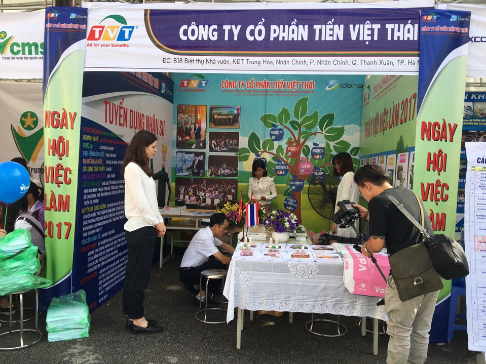 ( CBNV Công ty CP Tiến Việt Thái và Chuyên gia tập đoàn Idena tại gian hàng Ngày hội Việc làm 2017)