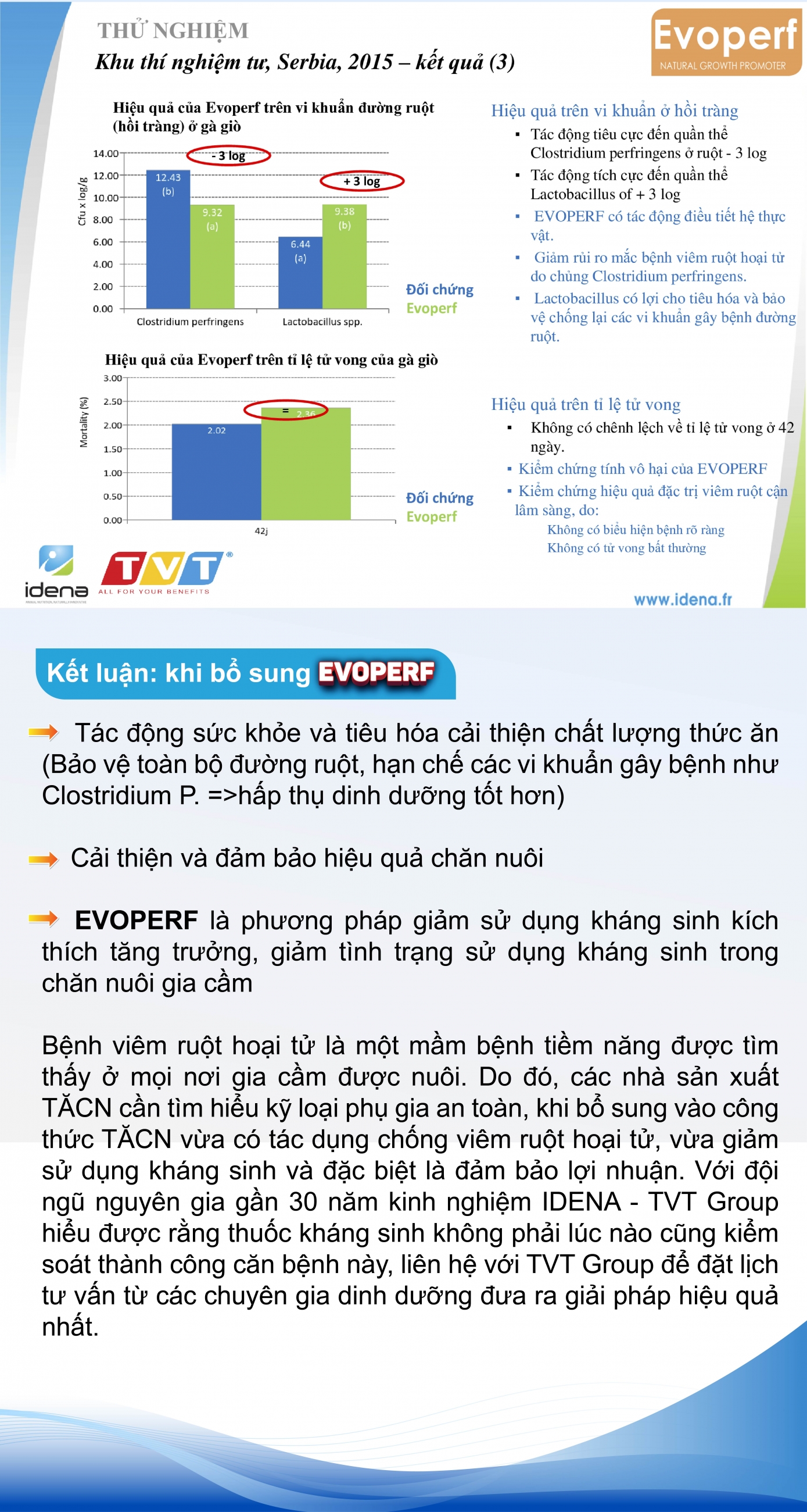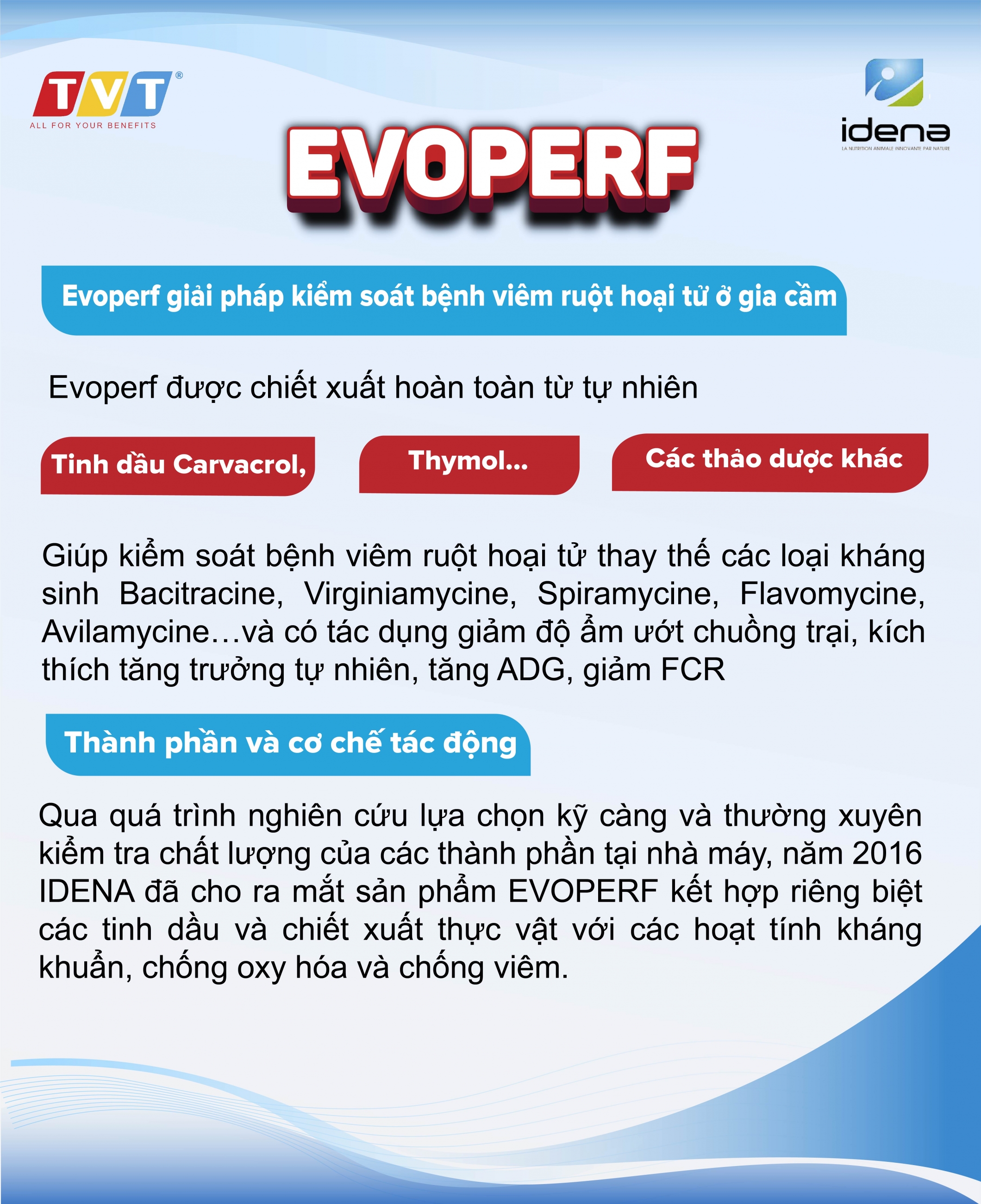 Trong chăn nuôi gia cầm, viêm ruột hoại tử rất được quan tâm, do nó tiềm ẩn những tác động bất lợi đến khả năng tăng trưởng trong đàn. Thuốc chống cầu trùng và kháng sinh đã được sử dụng trong một thời gian dài để có thể kiểm soát được vi khuẩn gây bệnh. Tuy nhiên sau khi lệnh cấm sử dụng chất kích thích sinh trưởng (antimicrobial growth promoters - AGPs) được ban hành, phạm vi ảnh hưởng của bệnh bệnh viên ruột hoại tử đang dần tăng cao. EVOPERF được tạo ra để giải đáp bài toán khó này.