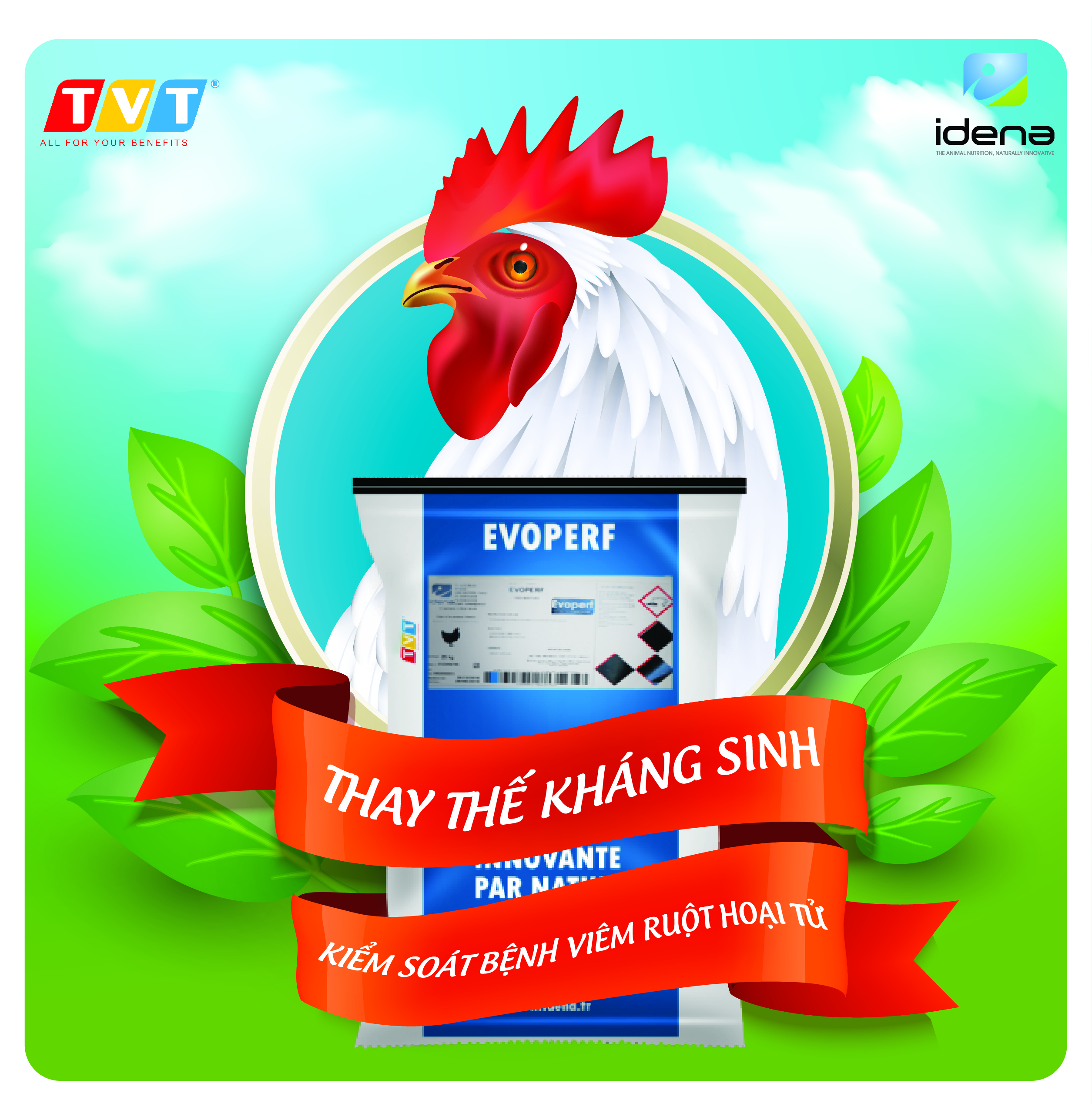 Trước thực tế đó, Tập đoàn IDENA, Pháp nghiên cứu và sản xuất Evoperf. Sản phẩm được phân phối độc quyền bởi Công ty CP Tiến Việt Thái, có thể giải quyết những vấn đề về bệnh trên đường tiêu hóa của gia cầm. Sản phẩm được chiết xuất hoàn toàn từ thiên nhiên, tinh dầu carvacrol, thymol… cùng các thảo dược khác. Giúp kiểm soát và điều trị bệnh NE trên heo và gia cầm, thay thế các loại kháng sinh bacitracine,