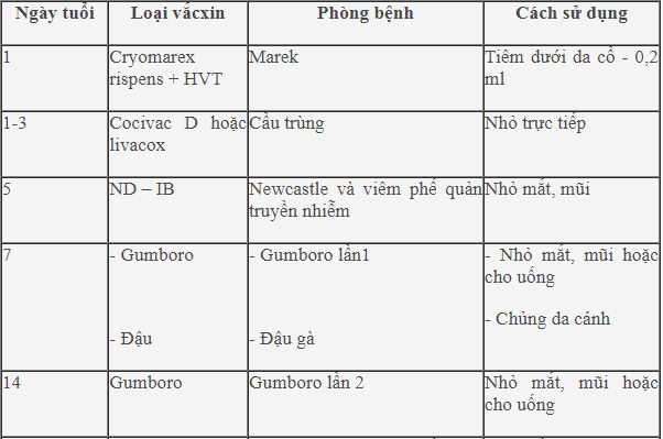 Lịch phòng vắcxin cho gà nuôi thịt