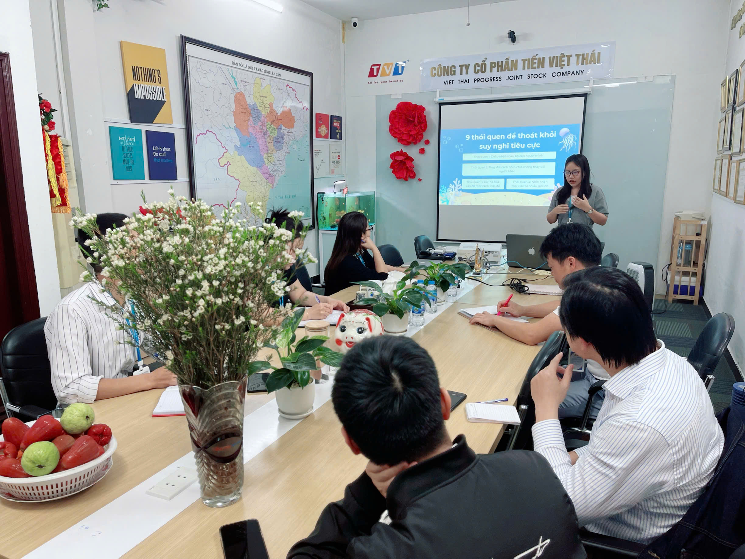 Ngày 15/03, tại TVT Group, Ms. Linh – Thực tập sinh đã có buổi chia sẻ đầy cảm hứng về cuốn sách "Mình là cá, việc của mình là bơi". Đây không chỉ là một cuốn sách, mà còn là kim chỉ nam giúp mỗi chúng ta rèn luyện tư duy tích cực, vượt qua giới hạn và không ngừng phát triển.