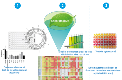 Xác định các thành phần hoạt tính mới là một bước quan trọng trong việc tạo ra các giải pháp dinh dưỡng mới. Trong quá trình tạo ra các sản phẩm của mình, IDENA luôn chú trọng phát triển các công cụ in vitro. Đây là công cụ quan trọng nhất để tạo ra các giải pháp dinh dưỡng hiệu quả mà không gây độc hại cho vật nuôi. Những mô hình in vitro này giúp hiểu rõ hơn cơ chế hoạt động của các thành phần hoạt tính trên ký sinh trùng và vi khuẩn, cũng như sự tương tác giữa ký sinh trùng và tế bào vật chủ. Và cuối cùng nhưng không kém phần quan trọng, chúng là một công cụ quan trọng để xác định tính hiệu quả của sản phẩm trên các chủng phân lập từ hiện trường và sau đó để điều chỉnh các giải pháp đối với các môi trường khác nhau.