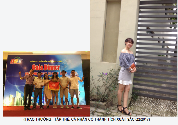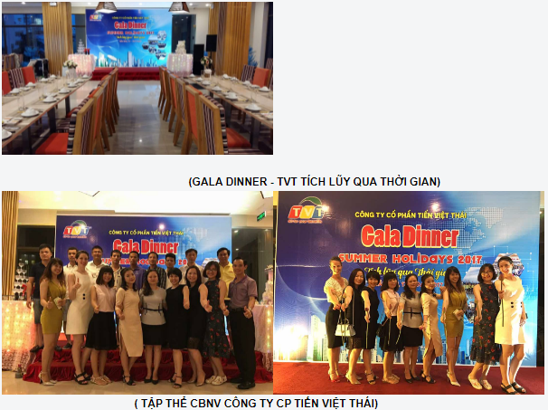 Trong kỳ nghỉ, các cán bộ nhân viên công ty đã được nghỉ ngơi, giao lưu, chia sẻ và đồng thời tham gia nhiều hoạt động thú vị. Đặc biệt, đêm ngày 18/7/2017 tại trung tâm dạ tiệc khách sạn Dragon sea đã diễn ra buổi tiệc gala dinner “ Tích lũy qua thời gian” vô cùng hoành tráng. Tại buổi tiệc, công ty đã tổ chức bổ nhiêm vị trí giám đốc chi nhánh Hồ Chí Minh cho đồng chí Phan Hải Chiến, tổ chức trao thưởng, trao giải cho các tập thể, cá nhân có hoạt động xuất sắc Quý 2/2017.