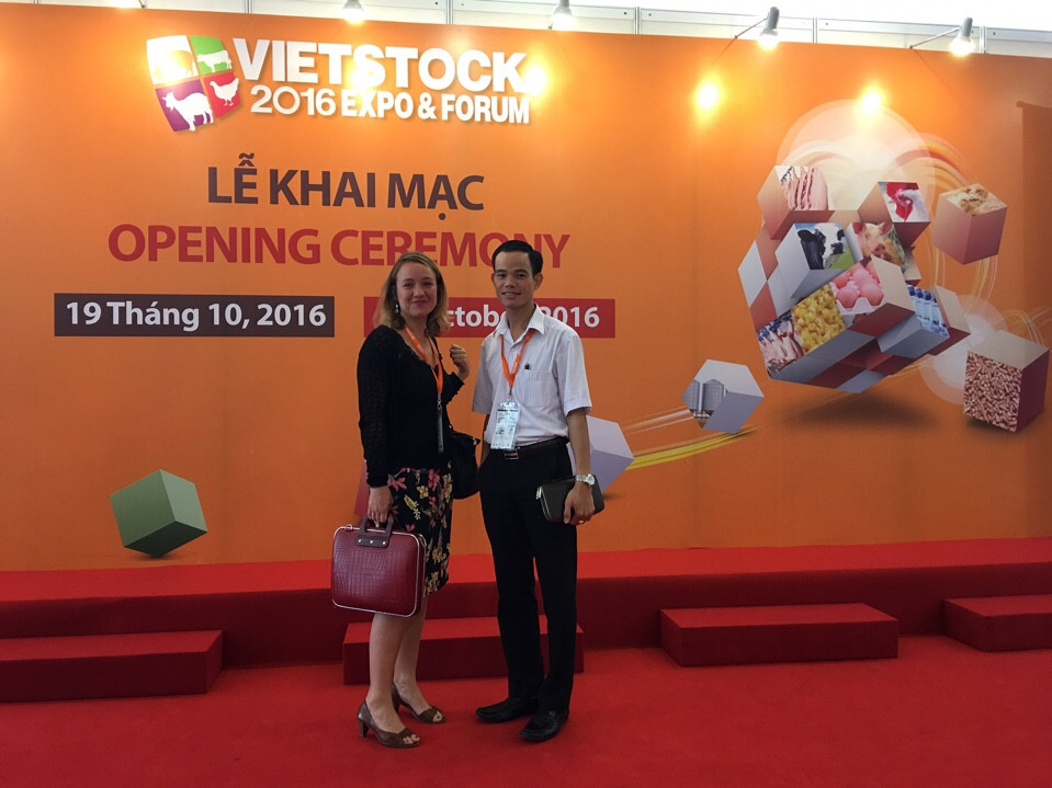 Tổng giám đốc Mr. Nguyễn Quốc Toán của Tiến Việt Thái và Giám đốc khu vực châu Á- Thái Bình Dương Ms. Virginie Heavy Chuyên gia của Tập đoàn Idena - Cộng hòa PhápNgày 19/10, Triển lãm quốc tế chuyên ngành chăn nuôi, thức ăn chăn nuôi và chế biến thịt (VIETSTOCK 2016) đã chính thức được khai mạc tại Trung tâm Hội chợ và Triển lãm Sài Gòn (Tp. Hồ Chí Minh).