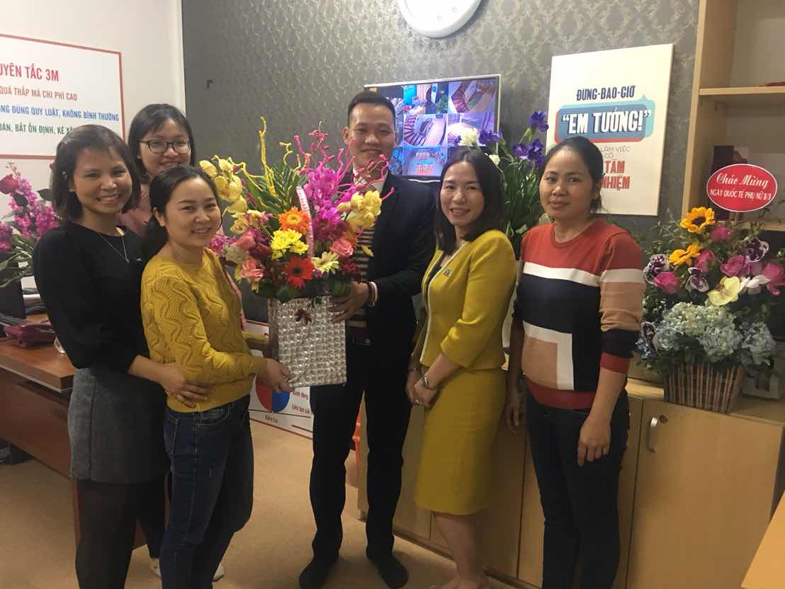 Các nữ công nhân viên được nhận hoa, những phần quà đặc biệt, lời chúc ý nghĩa của Tổng Giám Đốc và các nam đồng nghiệp trong Công ty.