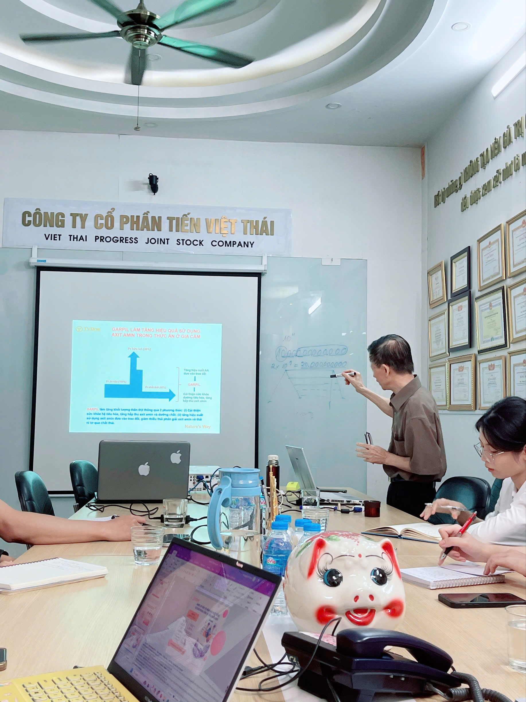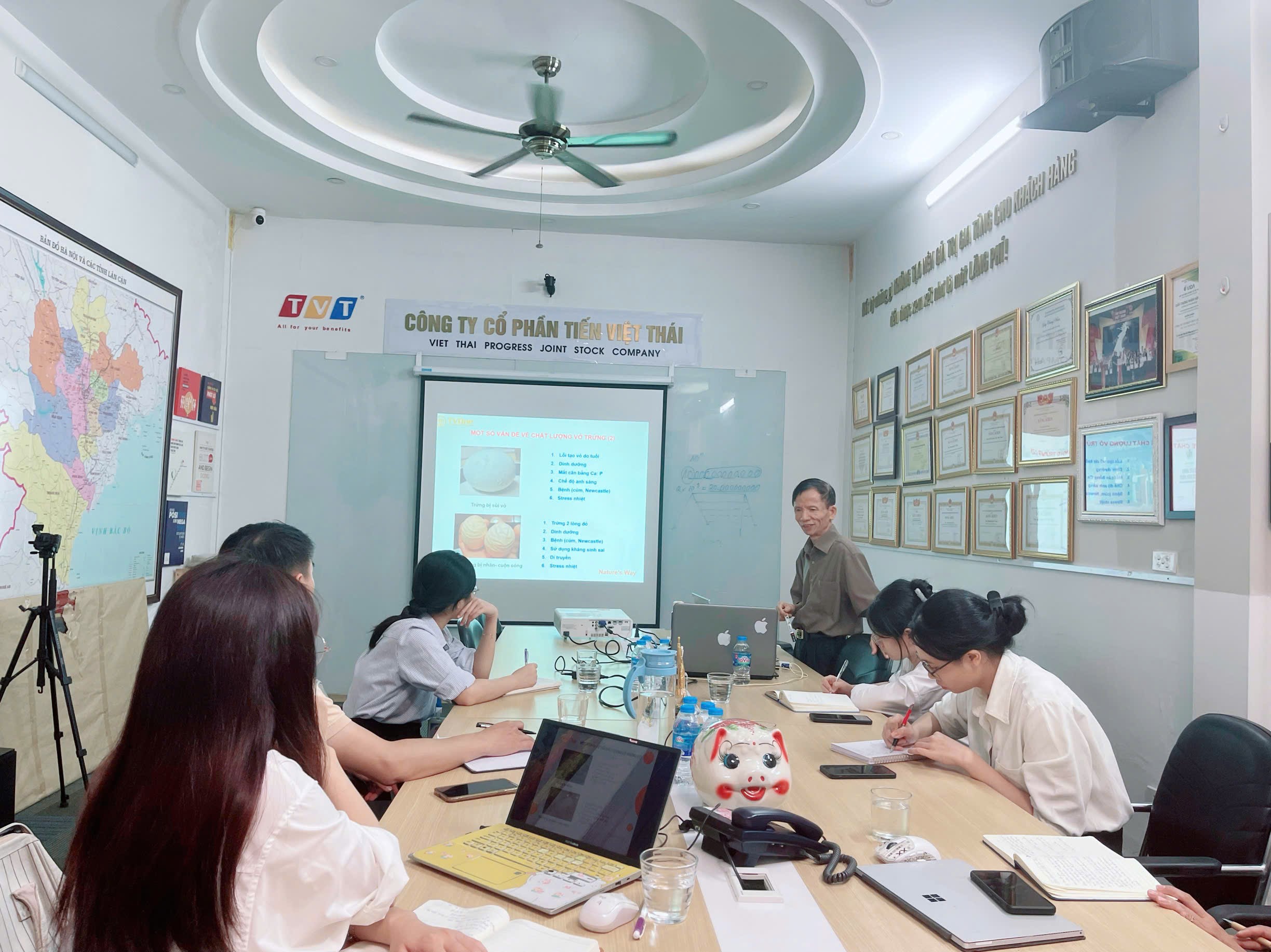 Ngày 14/11/2024, Tại phòng họp Công Ty CP Tiến Việt Thái đã diễn gia buổi đào tạo sản phẩm cho CBNV phòng Kinh doanh và Marketing. Người trực tiếp đứng giảng trong buổi đào tạo là: TS.Trần Quốc Việt , nguyên Trưởng bộ môn Dinh dưỡng và Thức ăn chăn nuôi , Viện Chăn Nuôi.